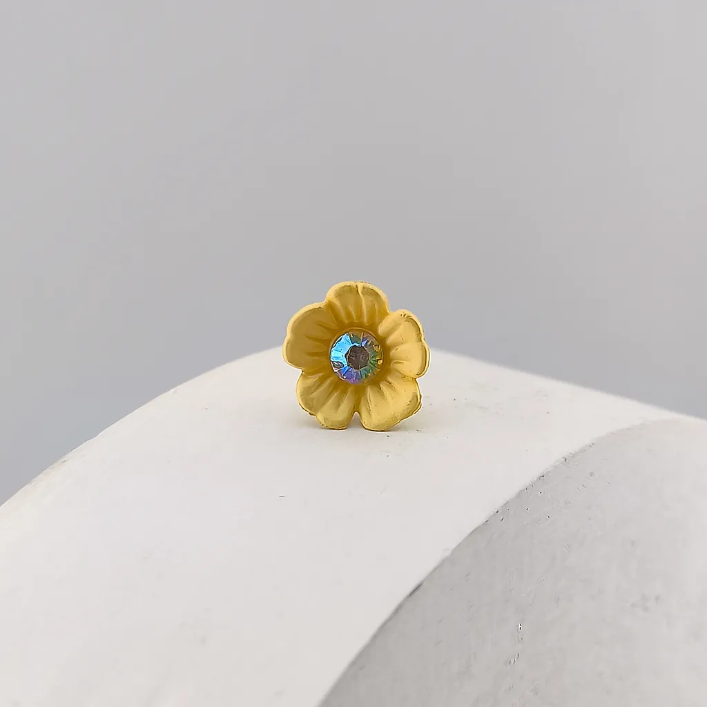 پیرسینگ گوش طرح گل زرد وسط نگین